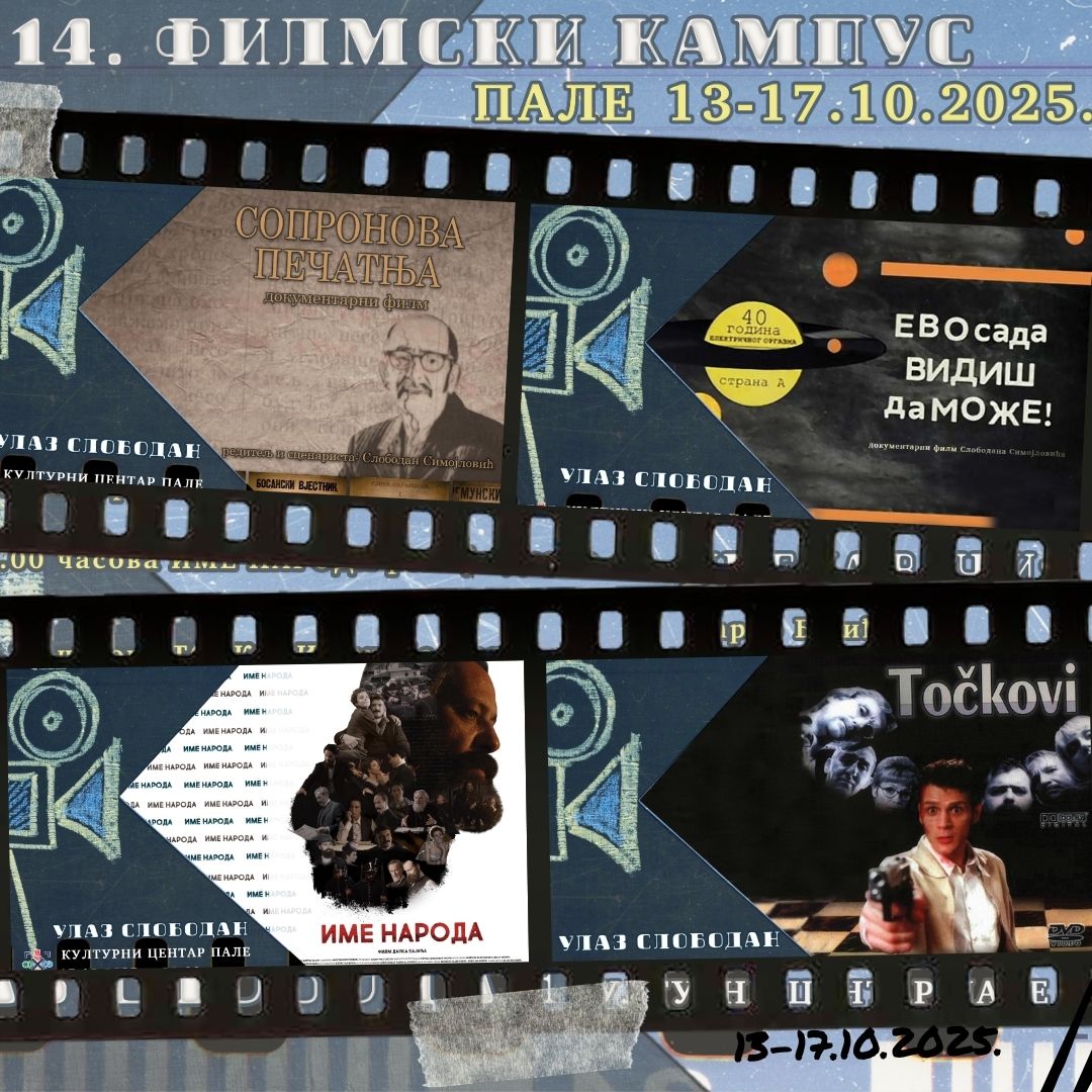 Oд 13. до 17. октобра у Палама Кинотека Републике Српске организује 14. по реду Филмски кампус- програм за студенте. Свечано отварање је у понедељак 13. октобра у 19:00 часова у биоскопској сали Културног центра Пале, након чега слиједи пројекција документарног